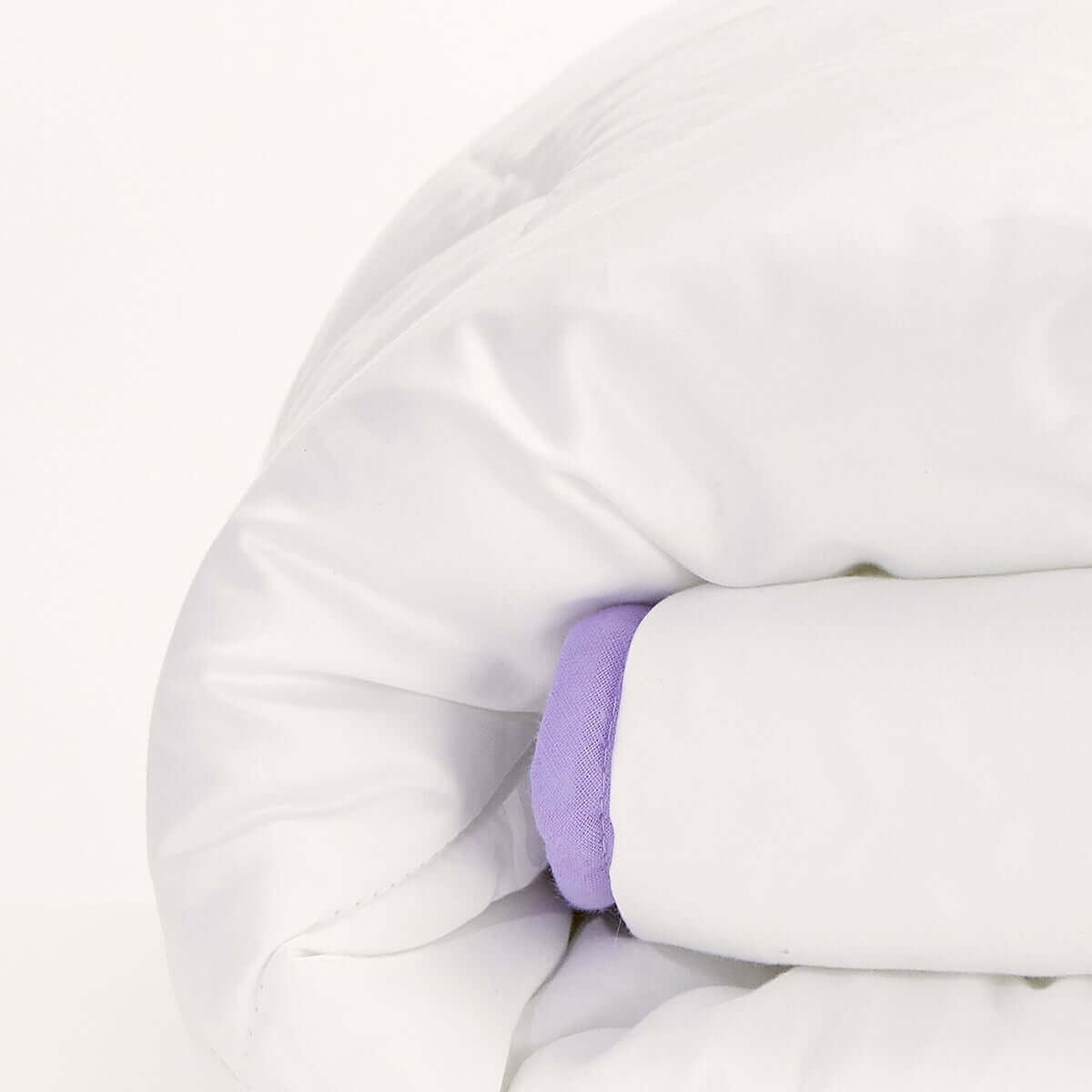 Notre matelassage spécial, ciblant les zones du corps, assure un drapé exceptionnel et une adaptation parfaite à chaque morphologie. Fini les bourrelets qui se tassent ou débordent : la couette repose délicatement contre le corps et offre un confort optimal quelle que soit votre position de sommeil. La répartition homogène du garnissage maintient une température de sommeil constante et la couette reste bien en place. Autre avantage : le matelassage la rend plus résistante et lui permet de conserver sa forme, un atout précieux pour celles et ceux qui privilégient le confort, la qualité et un environnement de sommeil naturel.