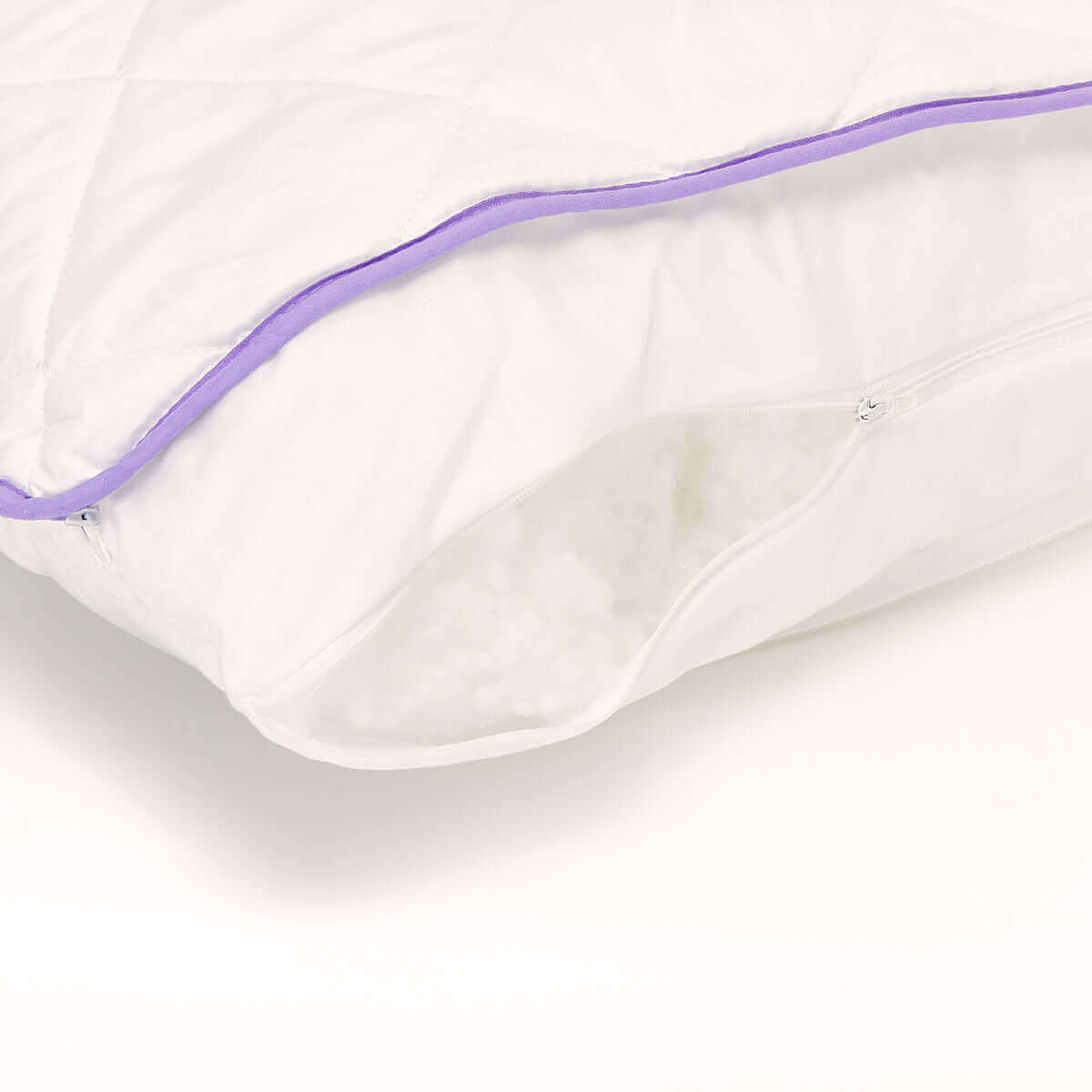 La doublure intérieure en coton maintient le garnissage bien en place, améliore la respirabilité et facilite grandement l'entretien de l'oreiller. Bien rangé et parfaitement protégé.