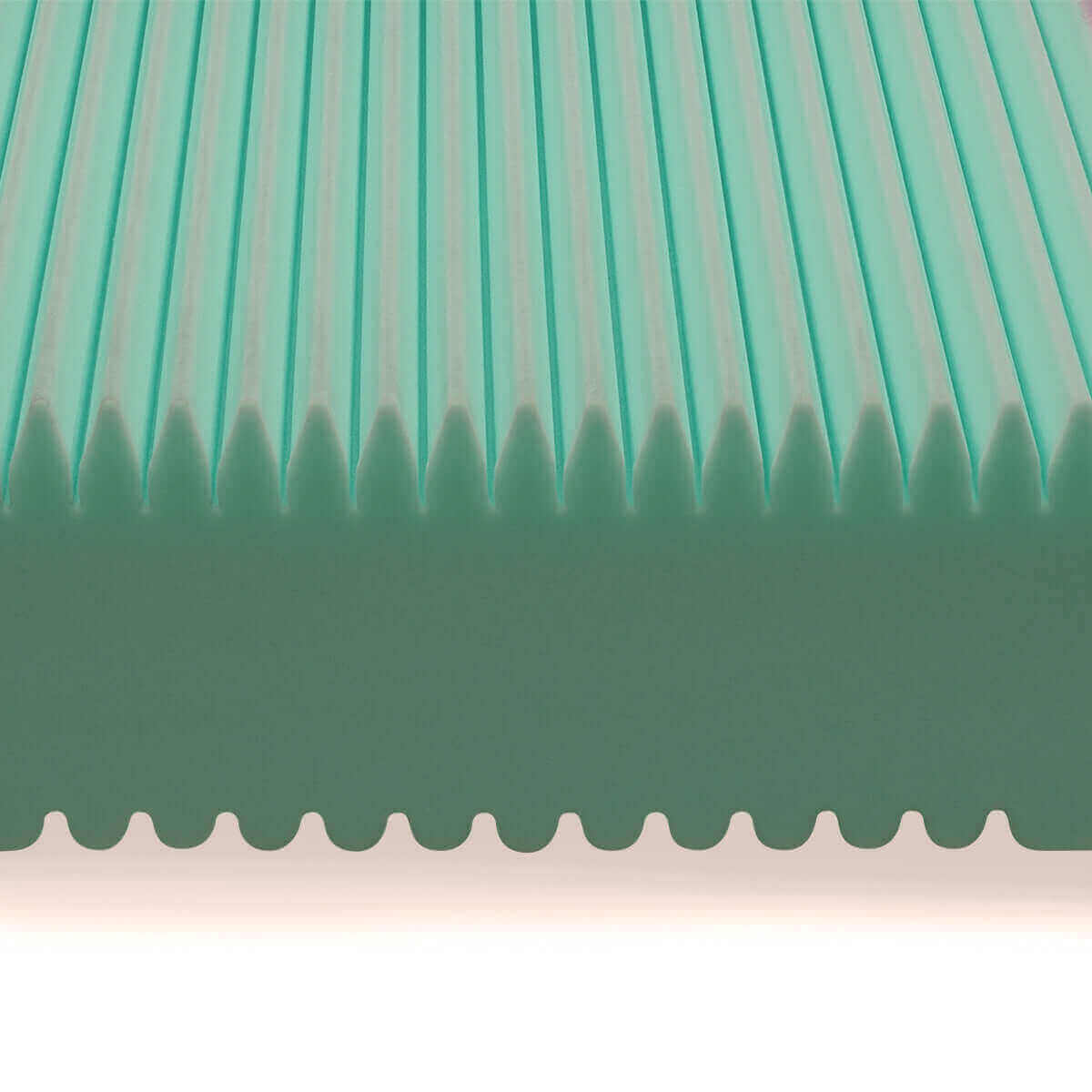 Ce côté du matelas offre une surface de couchage offrant un soutien constant grâce à une découpe en 5 zones bien définie. La mousse ferme et continue assure une stabilité remarquable et un alignement ergonomique de la colonne vertébrale, sans affaissement au niveau des épaules . Idéal pour les personnes dormant sur le dos, sur le ventre ou pour quiconque préfère un soutien plus ferme et compact sans compromettre la répartition équilibrée de la pression.