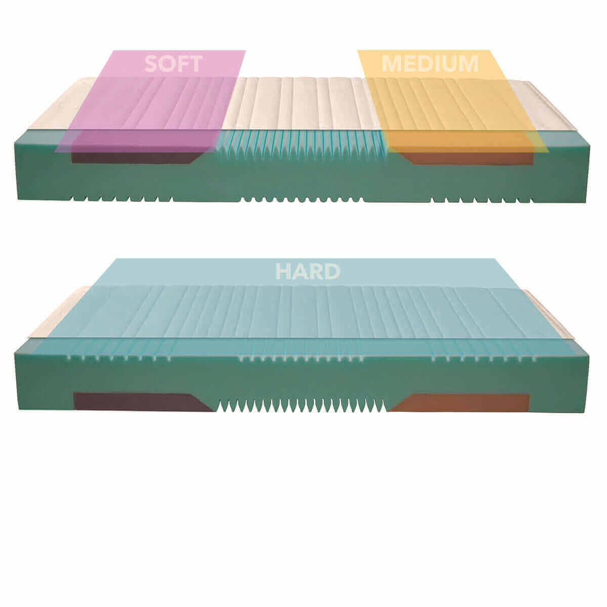 3 Härtegrade in einer Matratze