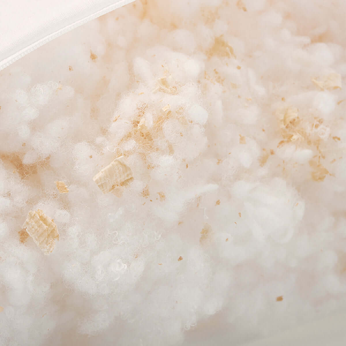 Le garnissage n'est pas lavable , car les copeaux de pin contiennent des résines naturelles et des substances amères aux propriétés antibactériennes et acaricides naturelles. Ainsi, le garnissage reste frais longtemps sans avoir besoin d'être lavé.