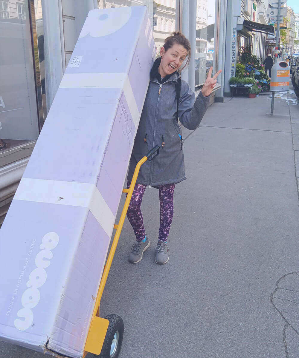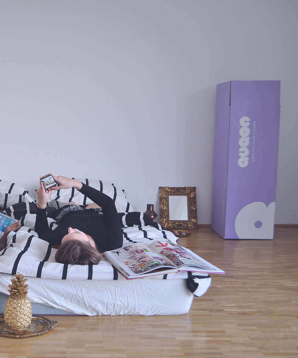 Deine QUQON-Matratze wird gerollt, sicher verpackt und kostenlos³ geliefert. So passt sie problemlos durch jede Tür und jedes Stiegenhaus.